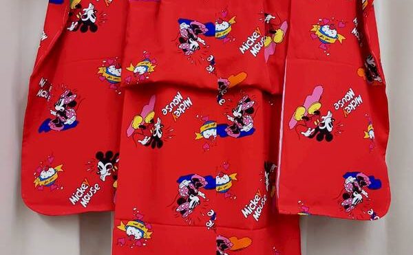 県内在住のM様より ディズニーランドで着用するきものと長襦袢の肩揚げと腰揚げミッキー柄の半衿付けを致しました。 きもの 肩揚げ、腰揚げ 長襦袢 肩揚げ、腰揚げ、半衿付け 岡田和裁研究所