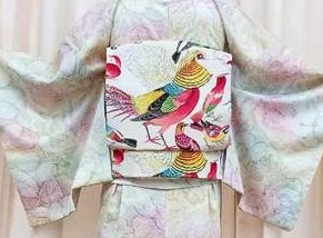 羽裏(羽織の裏)を名古屋帯へ仕立て 着用時に見えない所に接ぎを入れて仕立てを致しました。 岡田和裁研究所